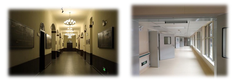 重修后的“紅樓”,尊重歷史、還原歷史,也兼具現(xiàn)代化醫(yī)院的功能。步入“紅樓”內(nèi)部,仿佛乘坐時(shí)光機(jī),由百年前跨越到現(xiàn)代。由老式的木扶手到現(xiàn)代的中央空調(diào)、網(wǎng)絡(luò)控制系統(tǒng)、門禁系統(tǒng)、護(hù)理呼叫系統(tǒng)……一切都是那么的自然、和諧。