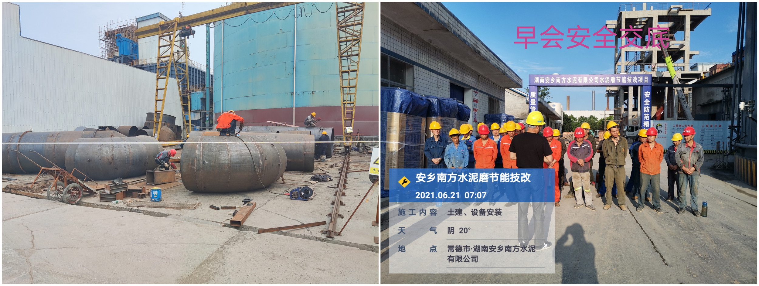 工程施工過(guò)程中,現(xiàn)場(chǎng)管理人員不畏辛苦,對(duì)施工安全嚴(yán)格把控,本項(xiàng)目最終零事故順利完工,使得湖南安鄉(xiāng)南方水泥有限公司最終呈現(xiàn)出全新的面貌。