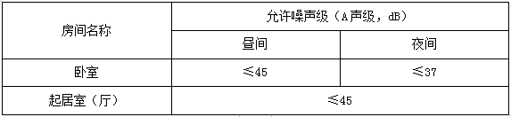 表1 臥室、起居室(廳)內(nèi)的允許噪聲級
