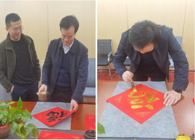 歡聲笑語辭舊歲,暖意融融迎新春。為豐富員工文化生活,增進員工間溝通交流,在喜慶祥和的小年到來之際,泰德分工會在HNBMI南院舉行“包餃子,迎新春;寫春聯(lián),慶佳節(jié)”活動。HNBMI總經(jīng)理粟道兵、工會主席劉忠良等領(lǐng)導(dǎo)出席活動。執(zhí)筆繪紅箋,墨香迎新年。本次活動邀請了公司工會主席劉忠良以書寫對聯(lián)、福字的方式為員工送上新年的美好祝福。活動現(xiàn)場,劉忠良主席和公司書法愛好者李冰在鮮紅的春聯(lián)紙上揮毫潑墨、筆走龍蛇,飽含祝福的春聯(lián)一氣呵成,瀟灑有力的福字躍然紙上,引得現(xiàn)場陣陣叫好,氣氛十分熱鬧。大家拿著散發(fā)淡淡墨香的春聯(lián)和福字,喜悅之情溢于言表。