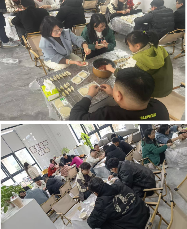 包餃子環(huán)節(jié)中,大家三五成群圍聚在桌旁,躍躍欲試。有的手法嫻熟,一舀一捏,一個圓潤飽滿的餃子遍躍然手上;有的是初次嘗試,略顯生疏。在大家的共同努力下,不一會兒,一排排形狀各異、獨具個性的餃子就擺滿了盤子。熱氣騰騰的餃子出鍋,大家迫不及待地品嘗著自己親手包制的餃子,享受著勞動帶來的喜悅和成就感